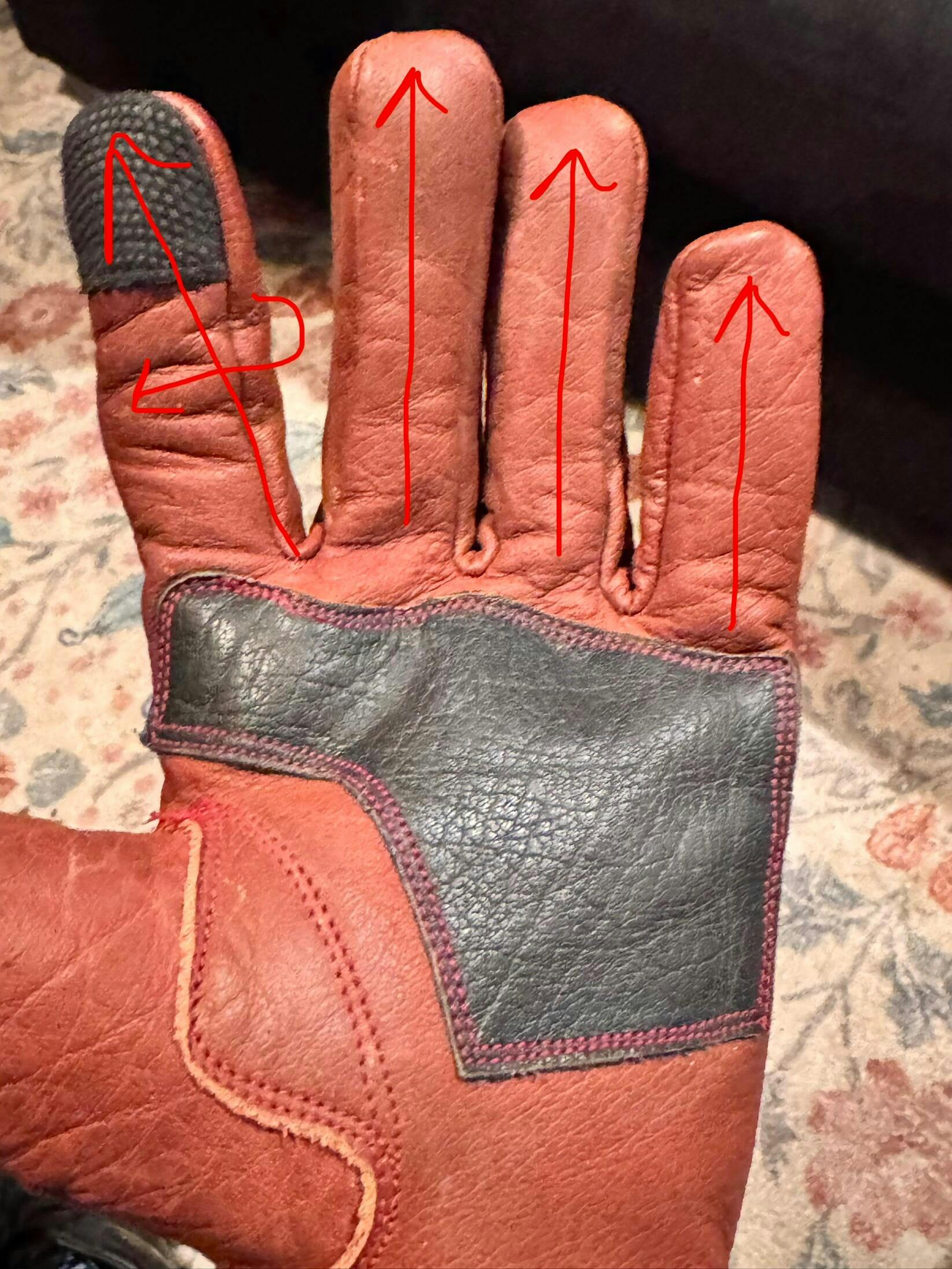 When you receive these Buffalo leather ranching gloves, expect for them to feel very stiff, like your first baseball mitt. The Water Buffalo is so tough it takes some time for it to loosen up